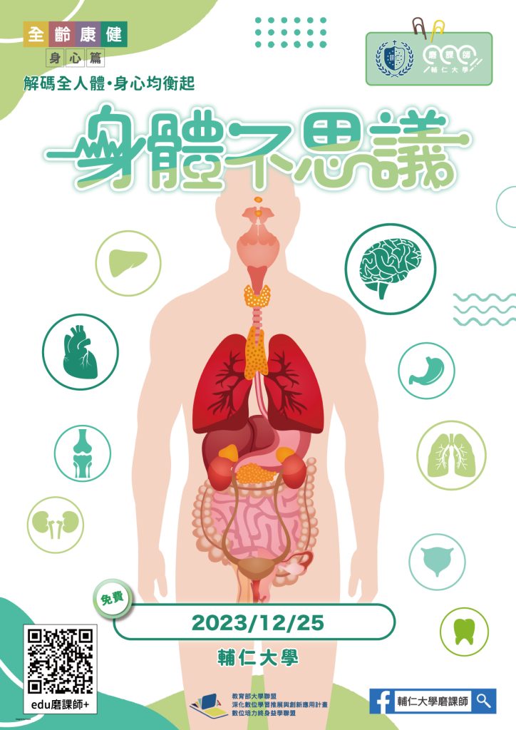 輔仁大學學校財團法人輔仁大學磨課師線上課程「身體不思議」,即日起開放線上報名Post author:教學組組員Post published:2024-01-02Post category:學校先修課程與非學分班 / 教師進修 / 校外活動相關訊息請下載參閱。輔仁大學學校財團法人輔仁大學磨課師線上課程「身體不思議」,即日起開放線上報名(公文)下載 Post Views: 90相關內容國立臺東大學夏季學院「部落遊學體驗課程」2025-04-25【轉知】「113年教師節敬師徵文活動」辦法及海報2024-07-04國立臺灣師範大學物理學系舉辦「2023年物理奧林匹亞推廣-轉動與剛體振盪理論與實驗教師研習」2023-12-08