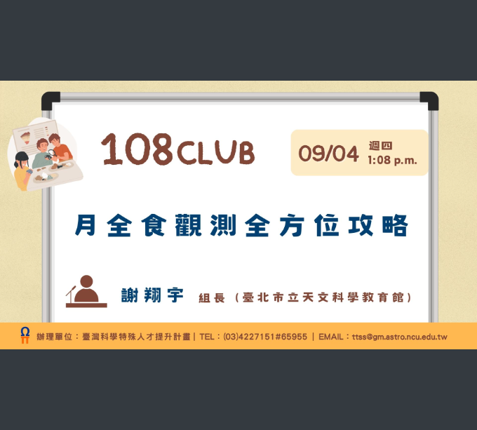 轉知-國立中央大學訂於114年9月4日辦理線上講座:《108俱樂部》——「月全食觀測全方位攻略」Post author:教學組組員Post published:2025-09-05Post category:教務處 / 教師進修來文-2025-09-05T093450.015下載 Post Views: 93相關內容財團法人大學入學考試中心基金會大學入學考試中心辦理「大學入學考試素養導向宣導會議-地理科」2023-10-18【轉知】113學年度綜合活動領域跨科主題課程-後疫情時代的關係議題:青少年生命韌力之探究:青少年生命韌力微課程成果發表會2024-09-04轉知-國立彰化師範大學進修學院推廣教育課程「日語會話五十音基礎班」課程簡章2025-06-03