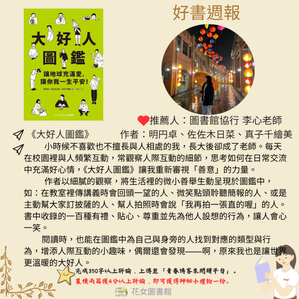 好書週報11/3-11/9Post author:圖書館主任Post published:2025-11-03Post category:圖書館 / 圖書館公告訊息 / 最新 / 最新消息 / 校園最新消息-一般文章 Post Views: 21相關內容轉知:2024年第32屆台北國際書展使用文化幣相關優惠措施2024-01-29飲冰室書展~歡迎參觀2021-12-13轉知:114年淡江大學第三屆資圖營:元宇宙互動光影-閱讀新體驗2025-01-06