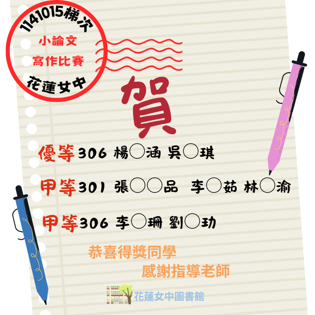 第1141015梯次小論文寫作比賽獲獎名單Post author:圖書館主任Post published:2025-11-25Post category:全國小論文比賽專區 / 圖書館 / 圖書館公告訊息 / 最新 / 最新消息 / 校園最新消息-一般文章 / 校園最新消息-置頂文章第1141015梯次小論文寫作比賽獲獎名單下載 Post Views: 78相關內容轉知-文化部預告「水下文化資產獎勵補助辦法」修正草案2025-04-02【公告】本學期113-2疑似廢棄車輛勘查、通知作業時程及處理原則2025-03-03轉知:逢甲大學辦理圖書資訊專業學分班(第20期)2025-05-28