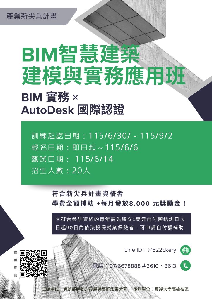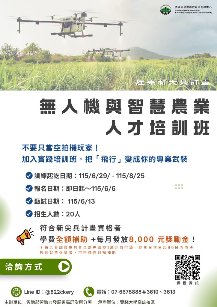 轉知:實踐大學高雄校區開設之「勞動部勞動力發展署115年產業新尖兵計畫」青年職訓課程Post author:輔導助理Post published:2026-01-20Post category:校外活動 / 輔導室※輔導室僅協助公告週知,並無代辦報名或宣傳業務。請有興趣師生、家長自行依主辦單位規定參加,建議欲參加同學先與家長討論,再報名前往參加。 Post Views: 27相關內容中原大學112年度創新產業應用培育工作坊計畫2023-04-14國立高雄師範大學舉辦「2023入學最前線」招生線上說明會2023-02-22轉知-實踐大學辦理「高中職小論文及專題研習營」2023-01-10