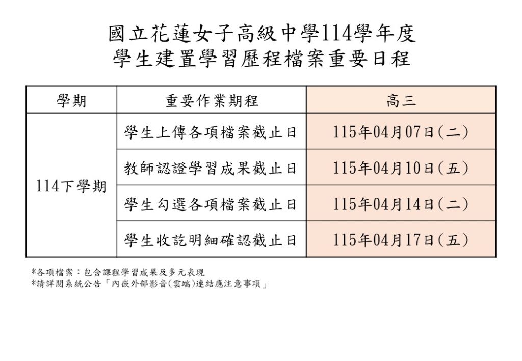 1. 【114學年度第2學期學習歷程檔案重要日程】