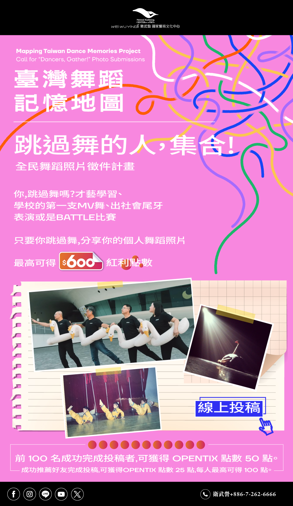 衛武營國家藝術文化中心全民舞蹈照片徵件活動Post author:hlgshlc020Post published:2026-03-31Post category:校外活動衛武營國家藝術文化中心全民舞蹈照片徵件活動下載衛武營國家藝術文化中心全民舞蹈照片徵件活動2下載衛武營國家藝術文化中心全民舞蹈照片徵件活動3下載衛武營國家藝術文化中心全民舞蹈照片徵件活動2026舞蹈書寫工作坊下載衛武營國家藝術文化中心全民舞蹈照片徵件活動-舞蹈照片徵件計畫下載 Post Views: 18相關內容「第四屆全國高中醫療科技創意競賽」,申請即將於12月2日截止,惠請師生把握最後申請機會。2024-11-182022台灣淨零永續暨台北能源產業就業博覽會2022-12-08「第四屆高中醫療科技創意競賽」,請師生踴躍報名參加。2024-09-20